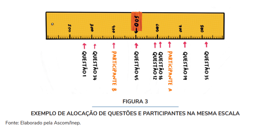 - Parâmetro de dificuldade: para avaliar os candidatos em todos os níveis de conhecimento em relação à habilidade exigida na questão, é elaborada uma escala de proficiência. Quanto maior o valor nessa escala, mais difícil é o item, estabelecendo, assim, a dificuldade presente na questão.